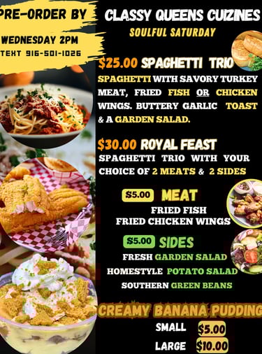 Pre-Order before Wednesday at 2 PM every week & enjoy some of our signature dishes served solely on soulful Saturdays.