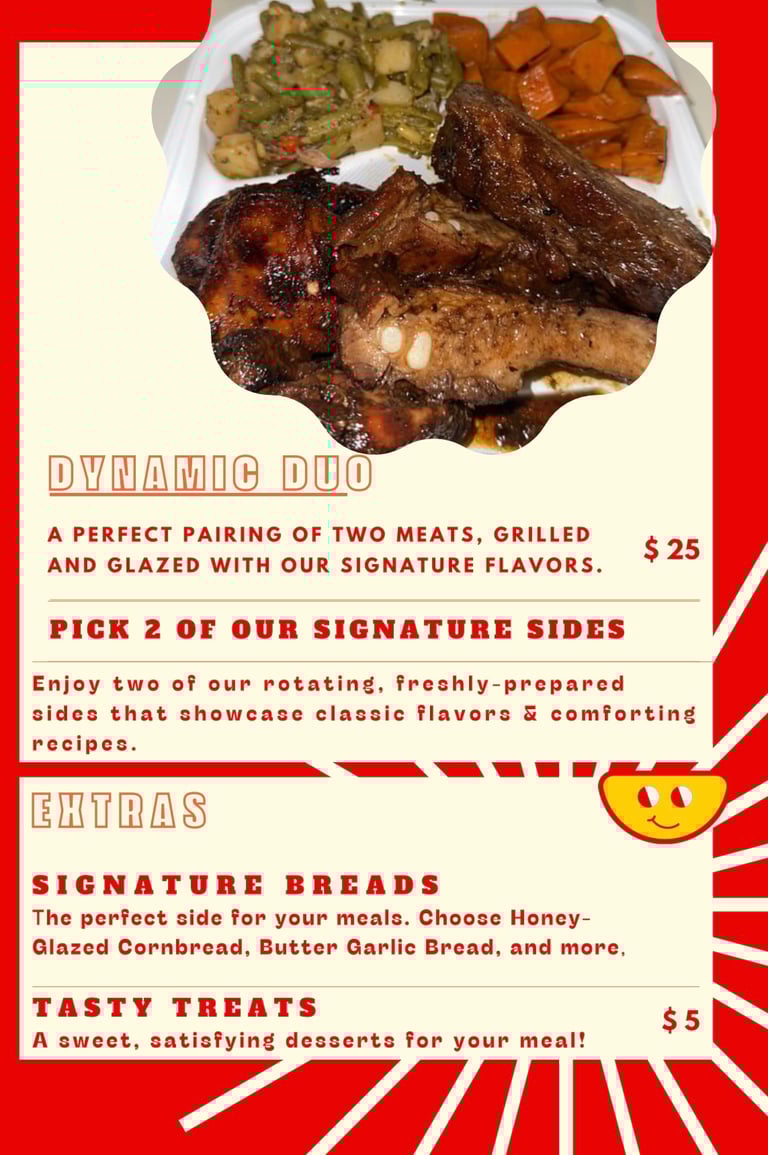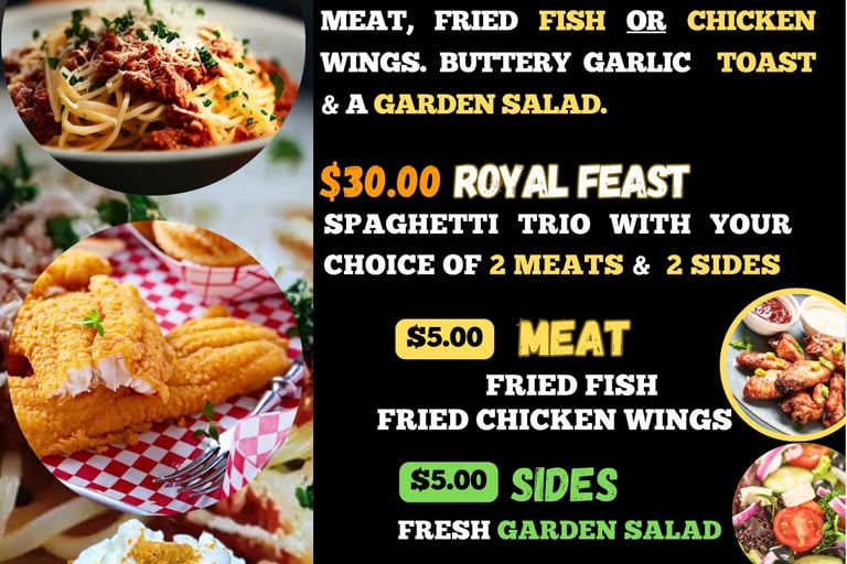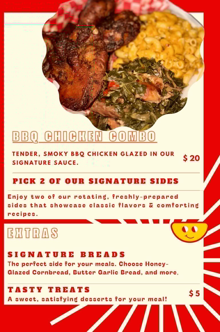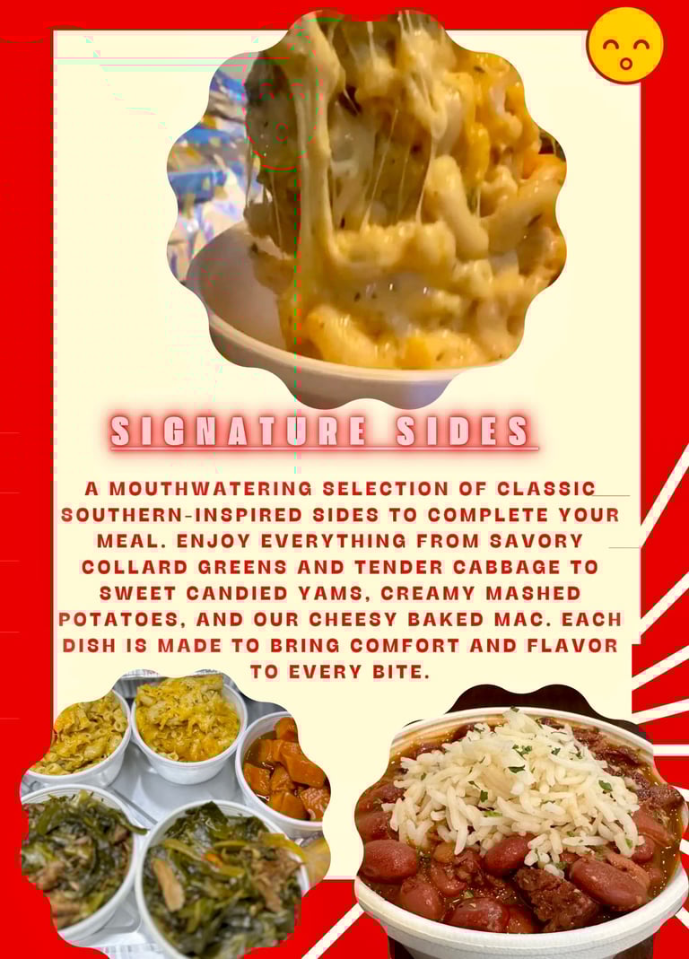 Experience gourmet meals with soulfully seasoned flavors.